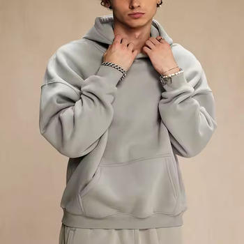 جودة عالية 500gsm البلوز الوزن الثقيل هوديي الرجال الفرنسية تيري هوديس طباعة نمط انخفاض الكتف لا سلاسل تصميم المتضخم